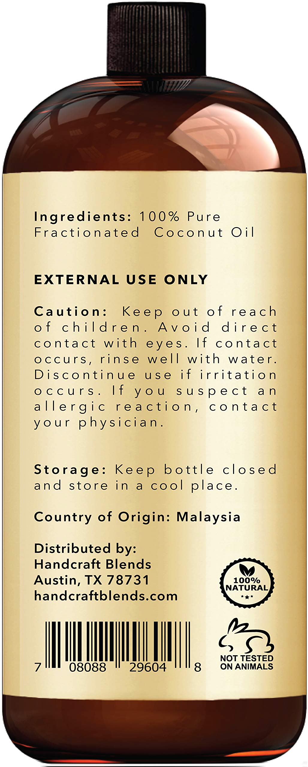 Handcraft Fractionated Coconut Oil - 100% Pure & Natural Premium Grade Coconut Carrier Oil for Essential Oils, Massage Oil, Moisturizing Hair Oil & ...