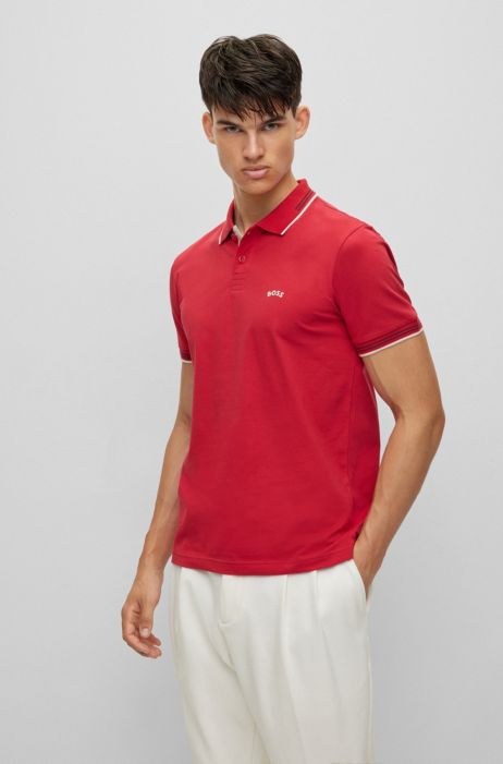 Slim Fit Polo Shirts for Men - Macy's BOSS Men's Slim-Fit Polo Shirt. $118.00. Tommy Hilfiger Adaptive. Men's Custom-Fit Ivy Polo Shirt with Magnetic Closure. $59.50. Sale $49.99. (1) Galaxy By Harvic. Men's Short Sleeve Pique Polo Shirts.