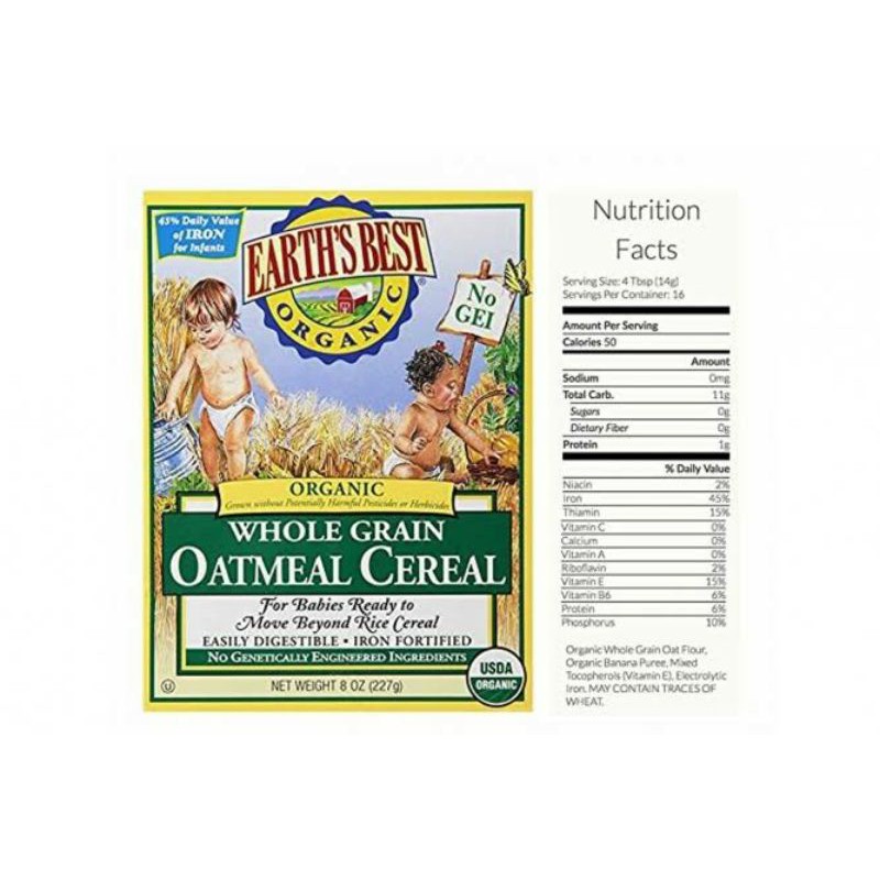 › Earths-Best-Organic-InfantAmazon.com: Earth's Best Organic Baby Food, Organic Whole ... Earth's Best Organic Baby Food, Organic Whole Grain Oatmeal Baby Cereal, Non-GMO, Easily Digestible and Iron Fortified Baby Food, 8 oz Box (Pack of 12) Visit the Earth's Best Store 4.7 out of 5 stars 1,183 ratings