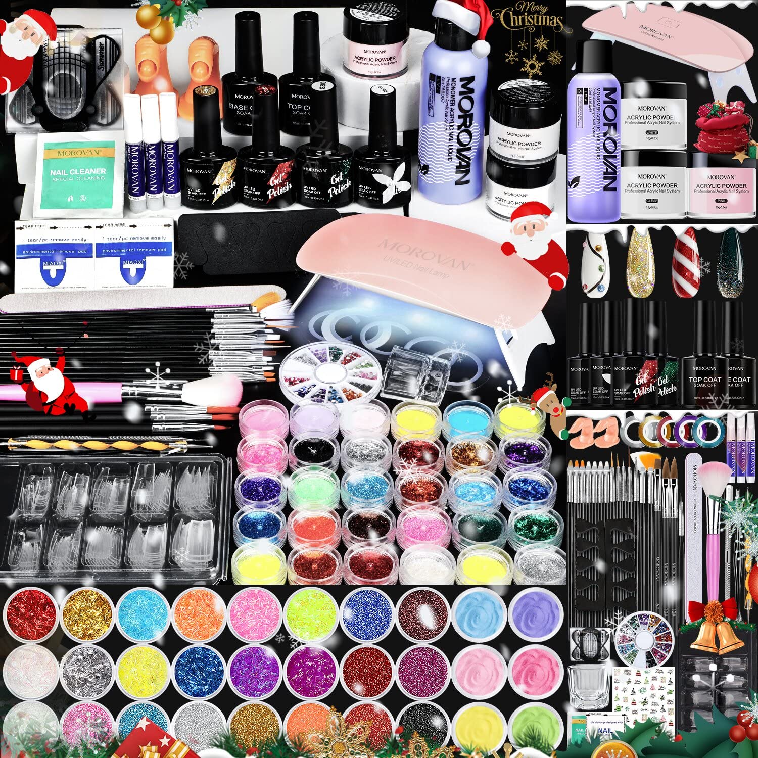 Morovan Acrylic Nail Kit - Professional Nails Kit Acrylic Set with Nail Lamp Gel Nail Polish 4 Colors Top Base Coat for Beginners DIY Nail Art Acrylic ...